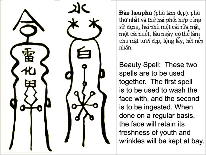 As promised, and since this is a Tao Babe blog (emphasis on the Babe), my first translation of the spells used is the Beauty spell. Who wouldn’t want to be beautiful and stay beautiful? Who wouldn’t want to have less wrinkles and retain a youthful complexion? Well, this combination of one/two punch will do the trick. Simply burn the spells in separate crucibles and then store the ashes separately. Make sure they are labeled correctly. One is for ingestion, the other for washing of the face.