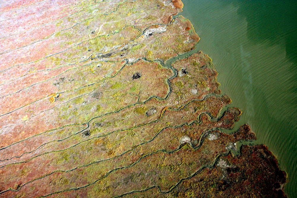 The precious marshlands are protected from the encroachment of human civilization. The roads that have been laid out in grids, making those rectangles, are human’s attempts at maintenance and sustenance of the remaining portions of what used to be vast tracts of marsh lands and salt flats. Now it must be nurtured and encouraged to thrive.