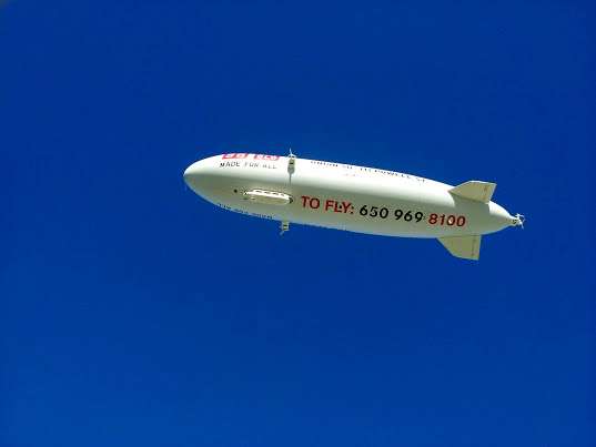 UPDATE: I am sad to report that as of today, November 15, 2012, there will be no more blimp rides in the skies over San Francisco Bay Area. The company has gone under for lack of funding. At least I was able to take a ride on the last week of their existence. From now on, if I ever want to float up in a big balloon, I will have to go to Europe or Japan, as this was the last remaining Zeppelin in service, in the USA. RIP Airship Ventures.