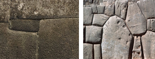 2. Te-Pito-o-Te-Henua’s stonework should be elevated to the same ingenious quality as that of ancient stone buildings in the Andes because it is built in precisely the same manner. the picture to the left is from Te-Pito-o-Te-Henua, (Rappa Nui). The picture on the right is from Sacsayhuaman in the Andes.