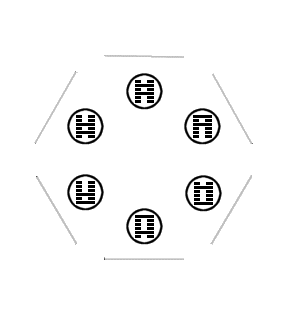 In the world that Fire Circulating occupies, it does not recognize that there are any other entities except for its six siblings. Notice also that it is moving inwards, towards the axis, as its yang lines spread out further apart, stabilizing the hexagram. This is akin to a skater moving faster when she pulls her arms closer towards her body.