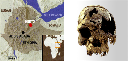 “We’ve lacked intermediate fossils between pre-humans and modern humans, between 100,000 and 300,000 years ago, and that’s where the Herto fossils fit,” said paleoanthropologist Tim White, professor of integrative biology at the University of California, Berkeley, and a co-leader of the team that excavated and analyzed the discovery site. “Now, the fossil record meshes with the molecular evidence.” [1]