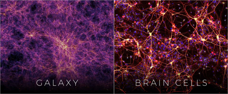 And now let’s zoom in and look at the relationships amongst these disparate things. Think about all the stars in the galaxies. Don’t they look like brain cells to you?