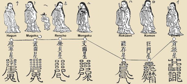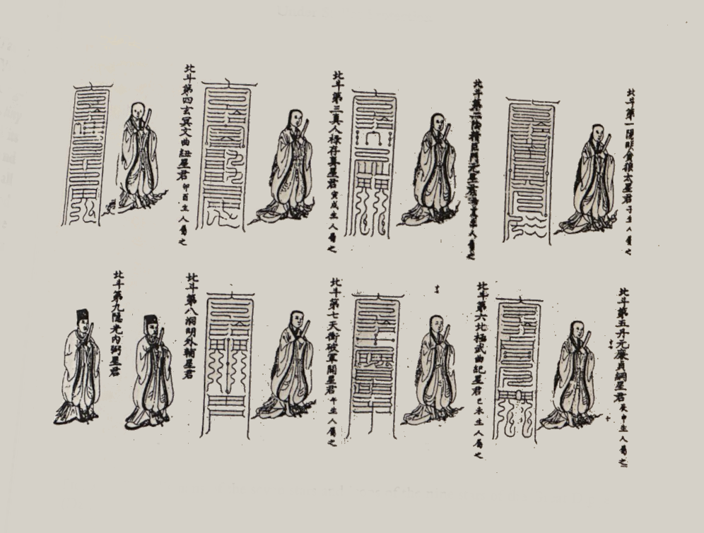 There was also a drawing from The Winged Stanzas on the Golden Mystery of the Seven Principles of the Northern Dipper (Beidou qiyuan jinxuan yuzhang 北斗七元金玄羽章), complete with royal court men to represent the stars, but this one has two dwarves instead of the single one that the Japanese pointed out.
