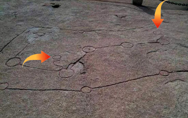 The image above is a Song Dynasty era Taoist carvings of a 9 star Big Dipper in Qingdao. The marks showing the the Ursa Major constellation were cut into the pink granite of Qingdao’s Laoshan mountains and reflect ancient Taoist astrology.