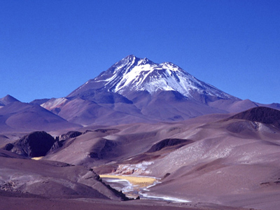 Ojos del Salado (Eyes of Salt) is just such a structure. It boasts of being the highest lake in the world, and having the highest active volcano on the southeast side of the border between Chile and Argentina. The force which caused Ojos del Salado to rise up out of the ocean depths also had the power to push an entire continent down into the waters of the Pacific Ocean. We find that evidence directly underneath our feet.