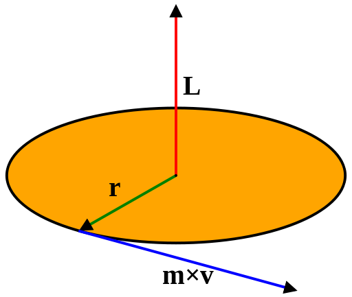 The resonant oscillator is governed by this angular momentum, where L represents angular momentum, r = radius, and mv = mass x velocity. Here is the formula for angular momentum.