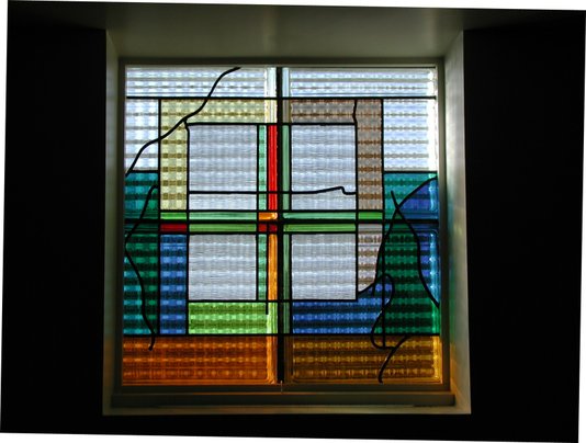 I turned to look at her and noticed that even though I had been told she was blind, she was, infact, staring at something in front of her as if she could see it. Curious, I got up and walked around the table until I was standing directly behind her. I squatted down so that my eyes were at level with hers, and that was when I was able to see what she was so intently staring at. It was a rectangular window with 24 panes of glass, four panes wide and six panes tall. Through the window, I could see the sky, the trees, the flowers, but viewed through the thick distorted glass, they looked like basic blocky shapes, their colors no longer vibrant, but rather dull and lifeless. All the fine and sharp details of the landscape was gone, replaced by the thick dull muted darkened colors which turned the scenery into something that was almost unrecognizable as a landscape, and looking more like some cheap ugly surrealistic abstract art piece. Worse yet, five of the center panes had been completely blackened out so that nothing could be seen through them. It was almost as if she was only able to see a dark-and-dull, coarse-and-general hint of what the real world looked like, around the periphery of her visual area.